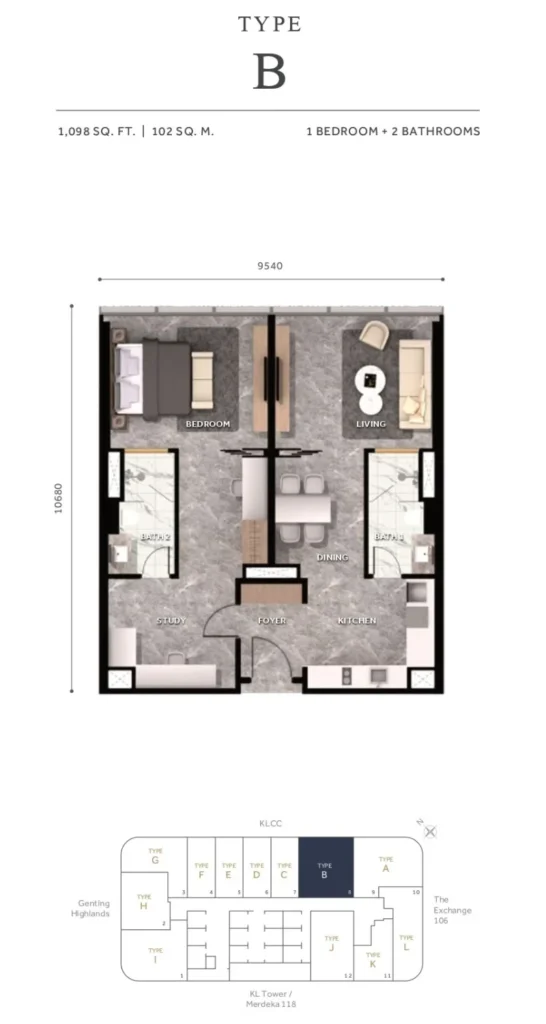 Situated minutes from Petronas Twin Towers, Bukit Bintang, and TRX, right where rental demand is strongest from expats, professionals, and tourists.